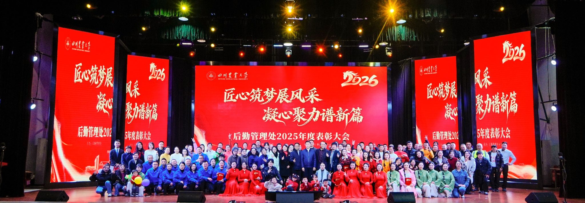 2025年,后勤管理处紧密围绕学校中心工作,强化服务保障,提升运行效能,在民生改善、运行保障与管理创新等方面取得显著成果。为总结年度工作、表彰先进典型,进一步弘扬爱岗敬业精神,凝聚团队合力,1月15日,后勤管理处“匠心逐梦展风采,凝心聚力谱新篇”表彰大会在成都校区麦立方隆重举行。副校长李德海、校工会副主席杨志钢出席活动,后勤管理处领导班子、受表彰员工、演职人员及观礼代表等200余人参加大会。处长陈东在致辞中指出,...