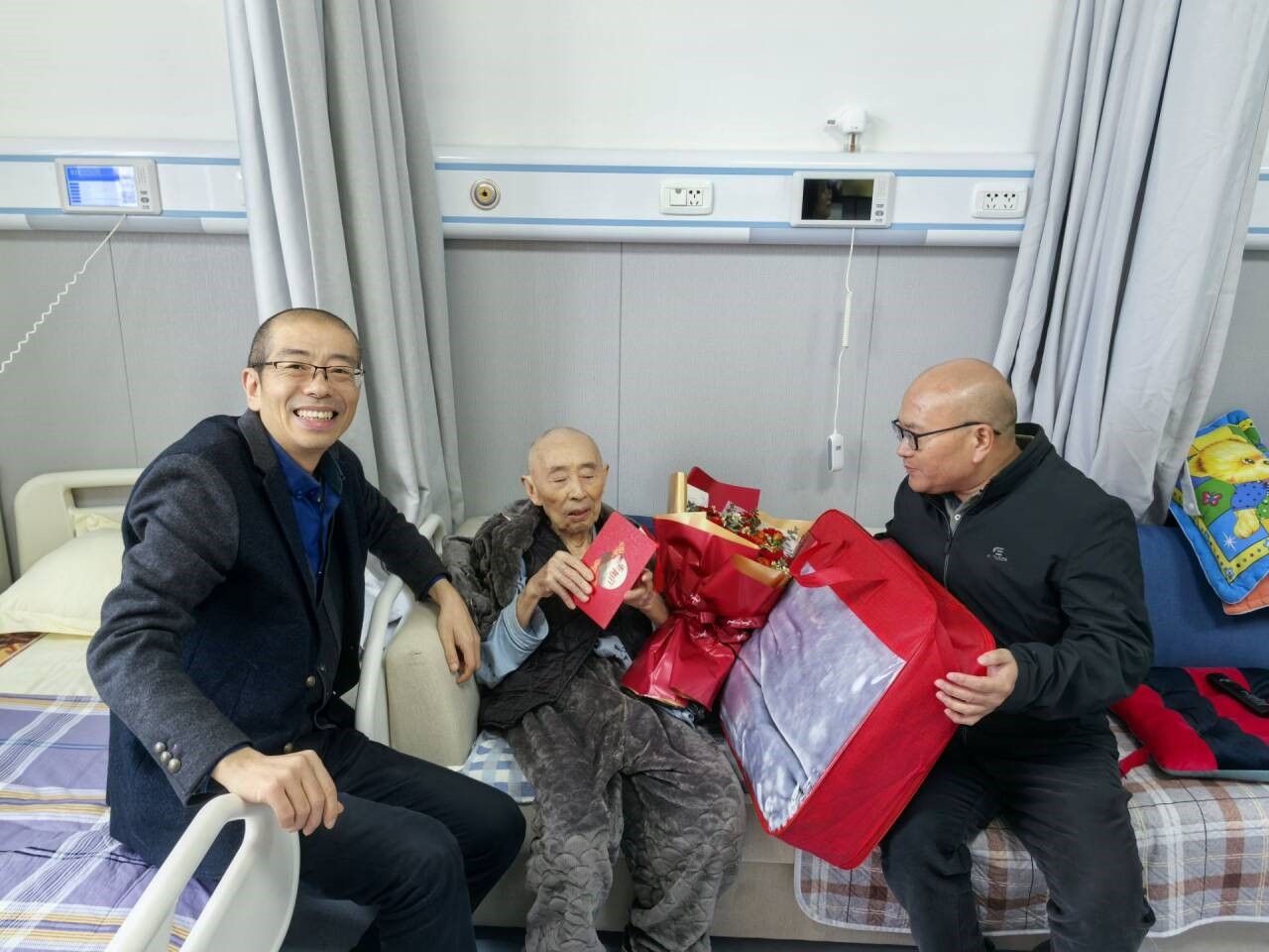 在走访中,陈东与老人们亲切交谈,送上节日礼物。她细致询问了他们的健康状况,关心他们的饮食与锻炼习惯,强调均衡营养和定期体检的重要性,表示后勤管理处将长期关注退休职工生活,提供全方位的支持与帮助。何祖锋代表党总支认真了解老人们的困难和需求,聆听他们的故事,并为老人送上精美鲜花,祝福他们安享晚年。