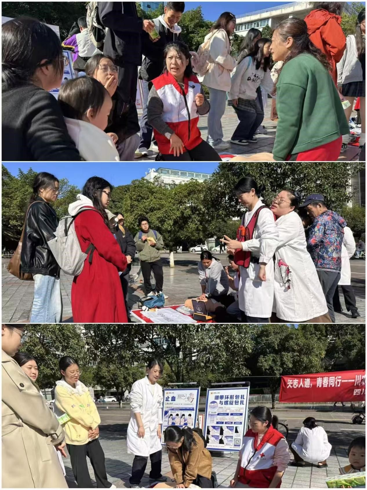本次培训依托“普及-进阶-认证”三级培训链条有序推进。9月15日,校红十字会和校医院加入四川省红十字会“急救地毯行动”,在校内设立培训点,面向全校师生开展急救技能实操训练,正式拉开本学期急救培训系列活动的序幕。