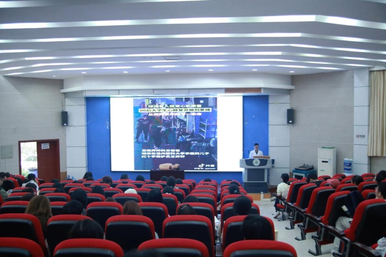 10月23日~31日进入活动集中开展阶段。一方面,举办校园急救知识普及讲座,通过案例分析、视频演示和现场互动,系统讲解心肺复苏、AED使用等关键急救知识,吸引200名学生积极参与。另一方面,在第十教学楼广场设置宣传点,由校医院医务人员现场演示止血包扎、心肺复苏、气道异物梗阻急救等操作,100余名师生参与沉浸式训练。同时,联合学生红十字与支教协会开展“急救进课堂”活动,300余名师生通过模拟实操、情景演练掌握基础急救流程,实现“培训+实践”无缝衔接。