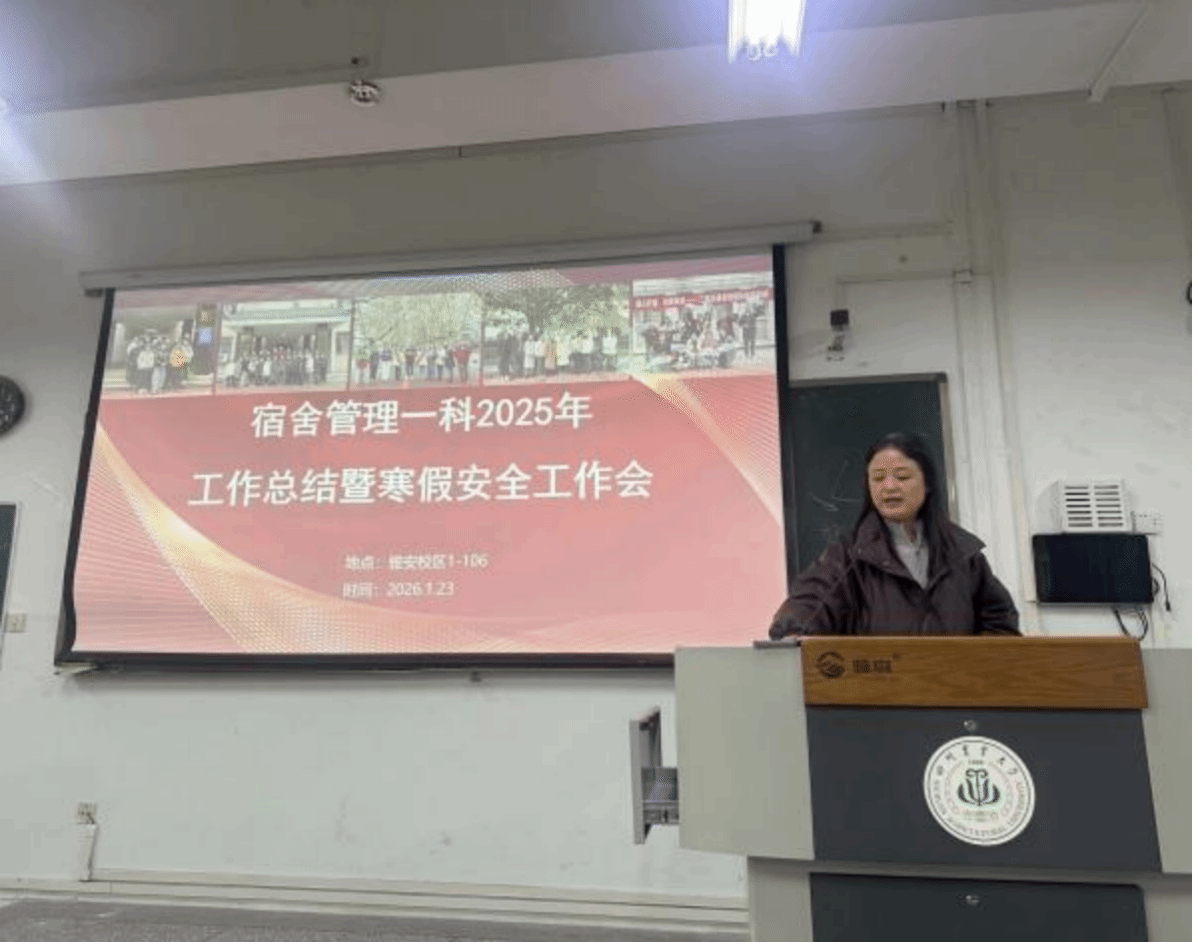 为全面总结2025年度宿舍一科管理工作成效,扎实部署寒假期间宿舍安全与留校学生住宿等工作,1月23日,宿舍管理一科召开了2025年工作总结暨寒假安全工作专题会。